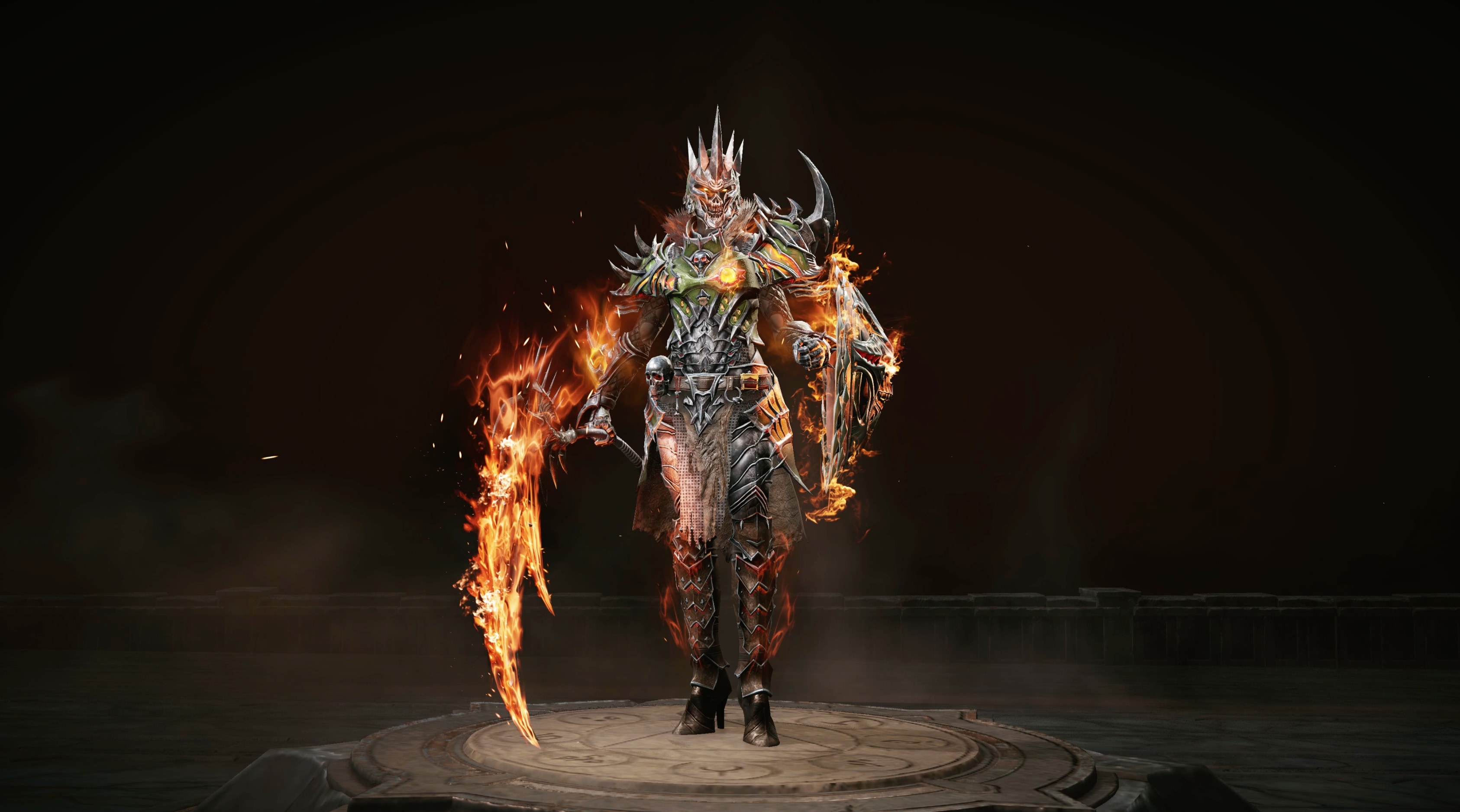 Una armadura marcada por la guerra y ajena a toda ceremonia. Este cosmético lleva la firma de aquellos que hacen retroceder a las hordas del infierno: calcinada, inquebrantable y ajena a toda piedad.