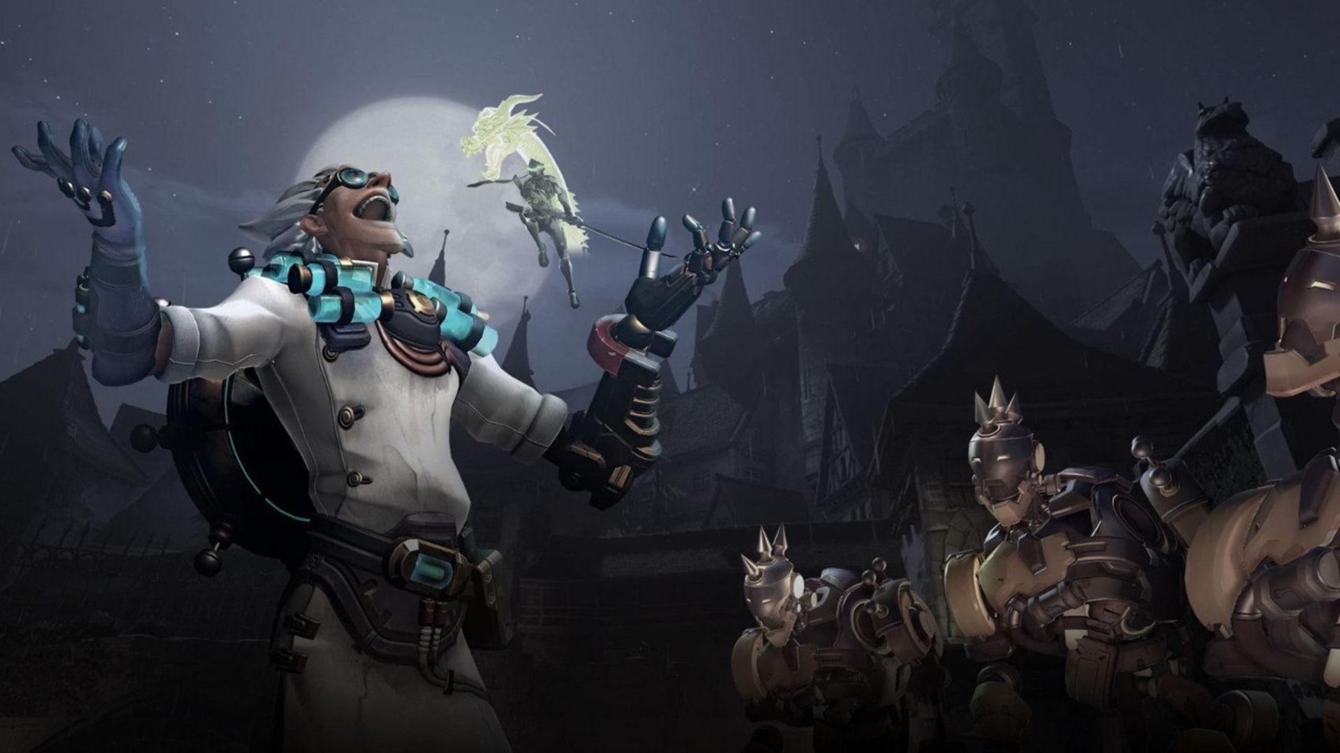 Pero los tratos no terminan aquí. Prepárate para el susto con los disfraces legendarios de Cassidy oni, Wuyang mermonstruo, Moira vampira, Sombra ninja y el terror pirata Reinhardt Wilhelm el Tuerto. Los aspectos épicos como Echo bosques malditos, Zenyatta osito maldito y Torbjörn vela maldita completan la lista de invitados espectrales además de 80 prismas míticos, cajas de botín legendarias, gestos universales, monedas, créditos y mucho más.