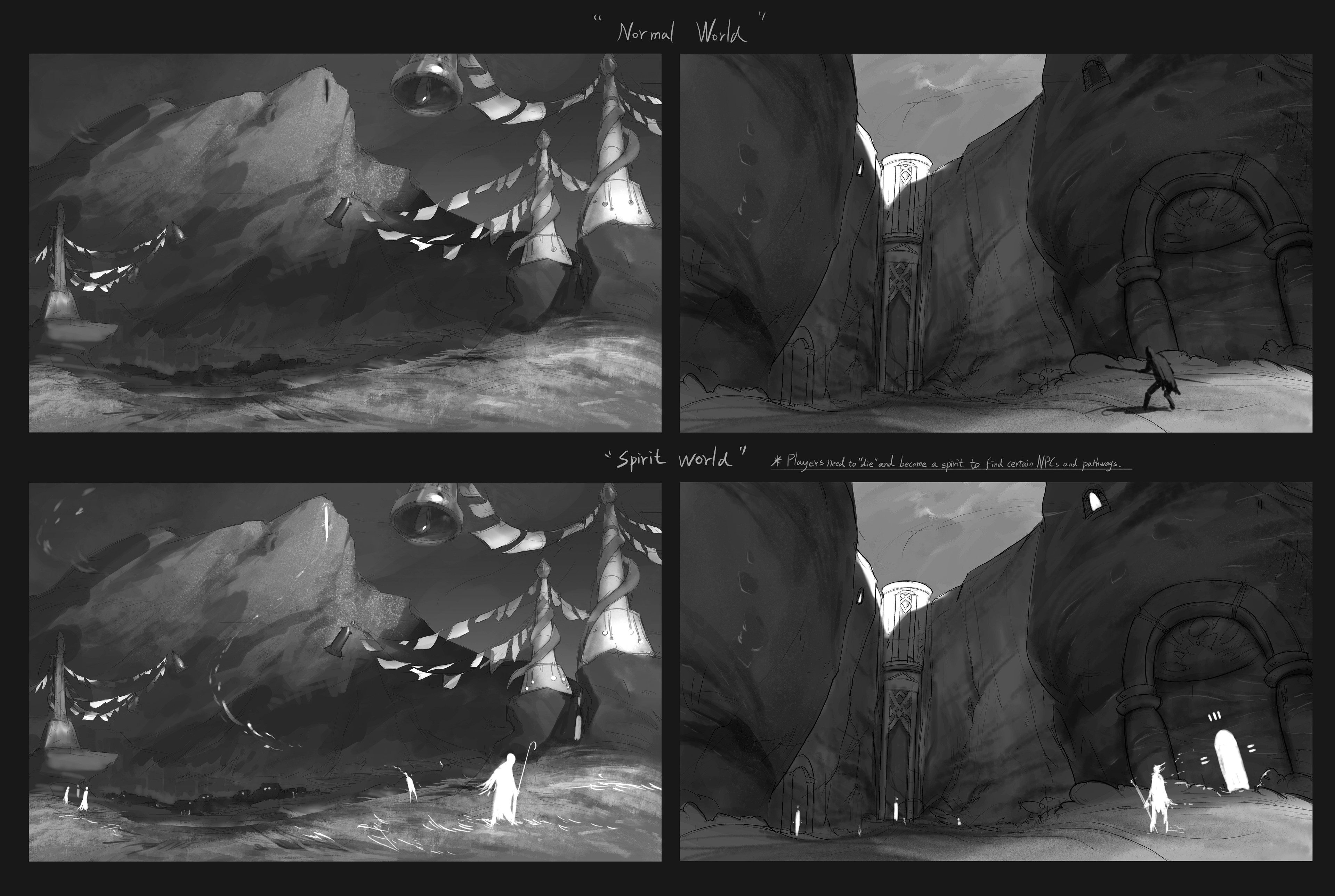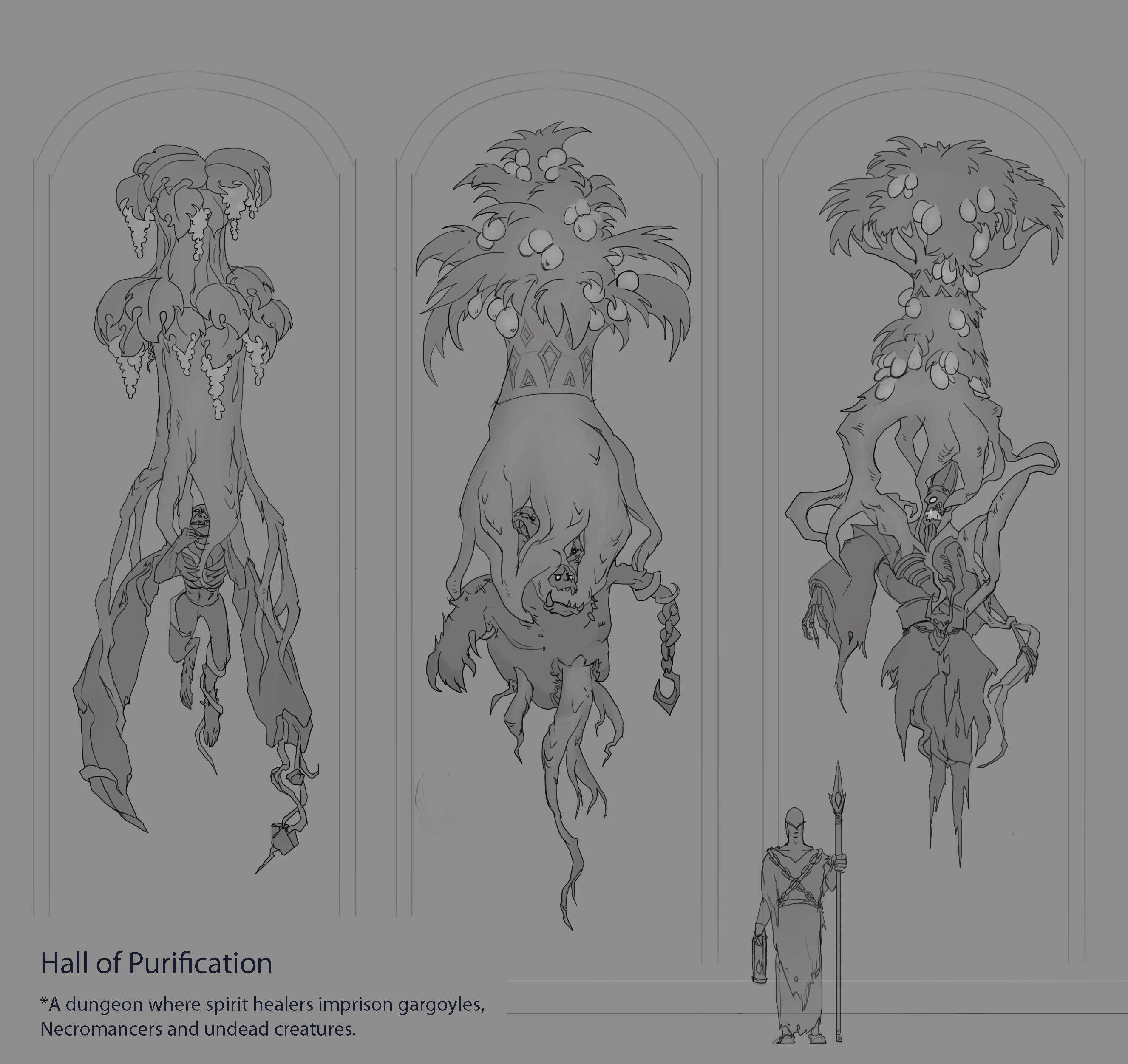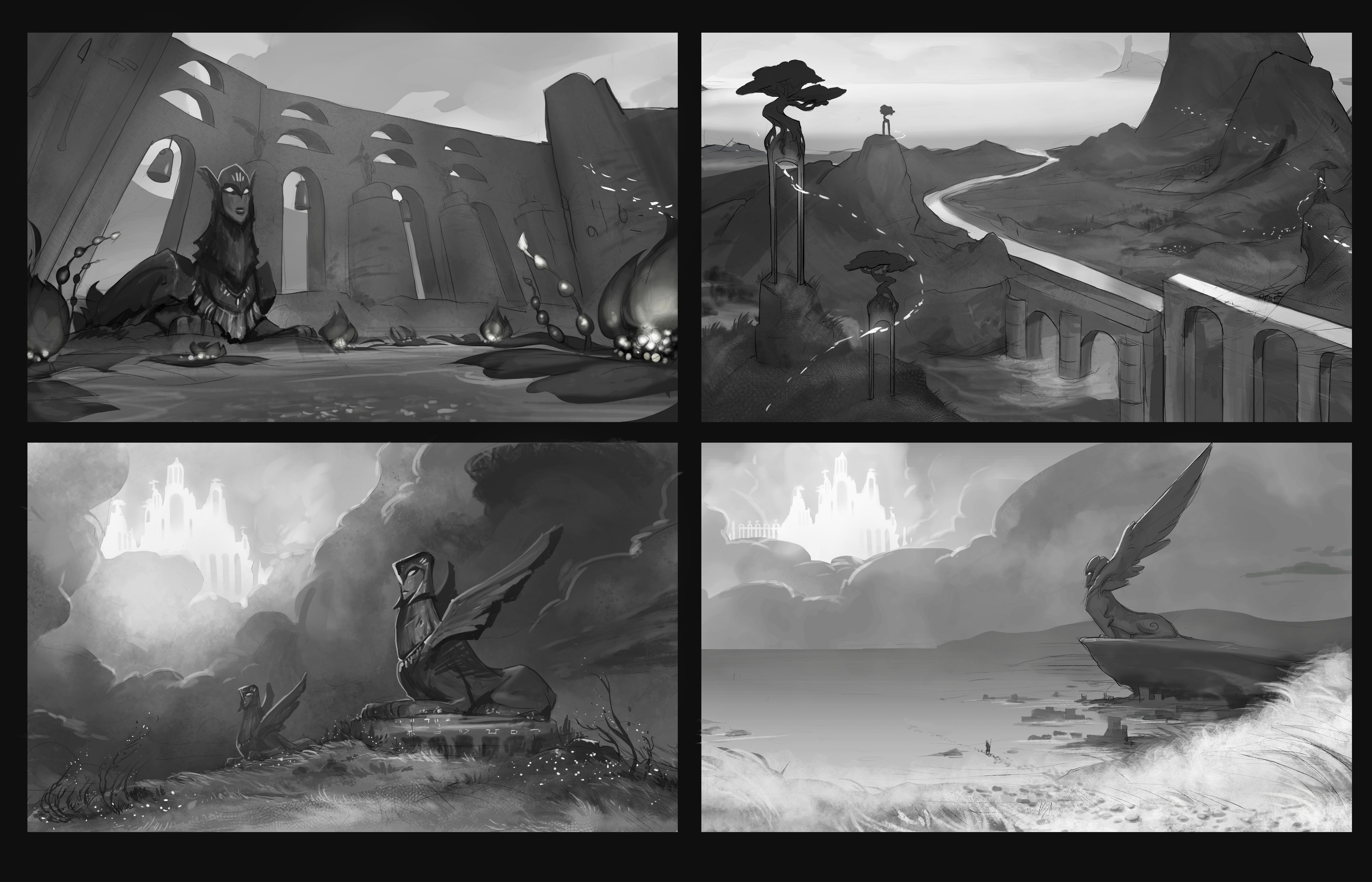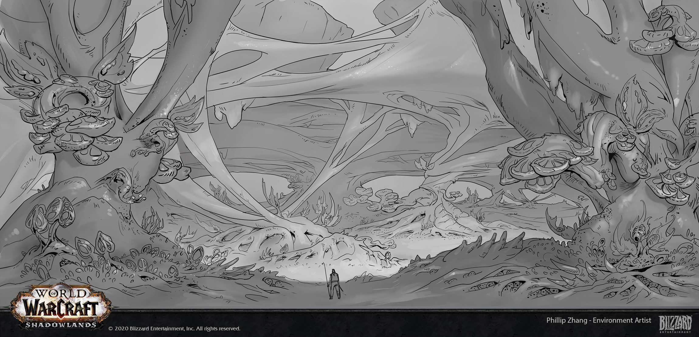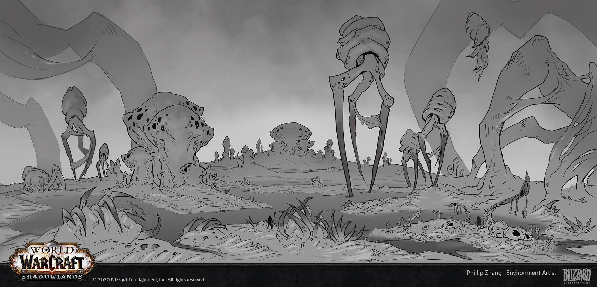 «Hice algunos de los primeros bocetos de desarrollo visual para World of Warcraft - Shadowlands a finales de 2018. El objetivo era explorar las posibilidades visuales de la "zona del orden" y la "zona del caos", que más tarde evolucionaron a Bastión y Maldraxxus.»