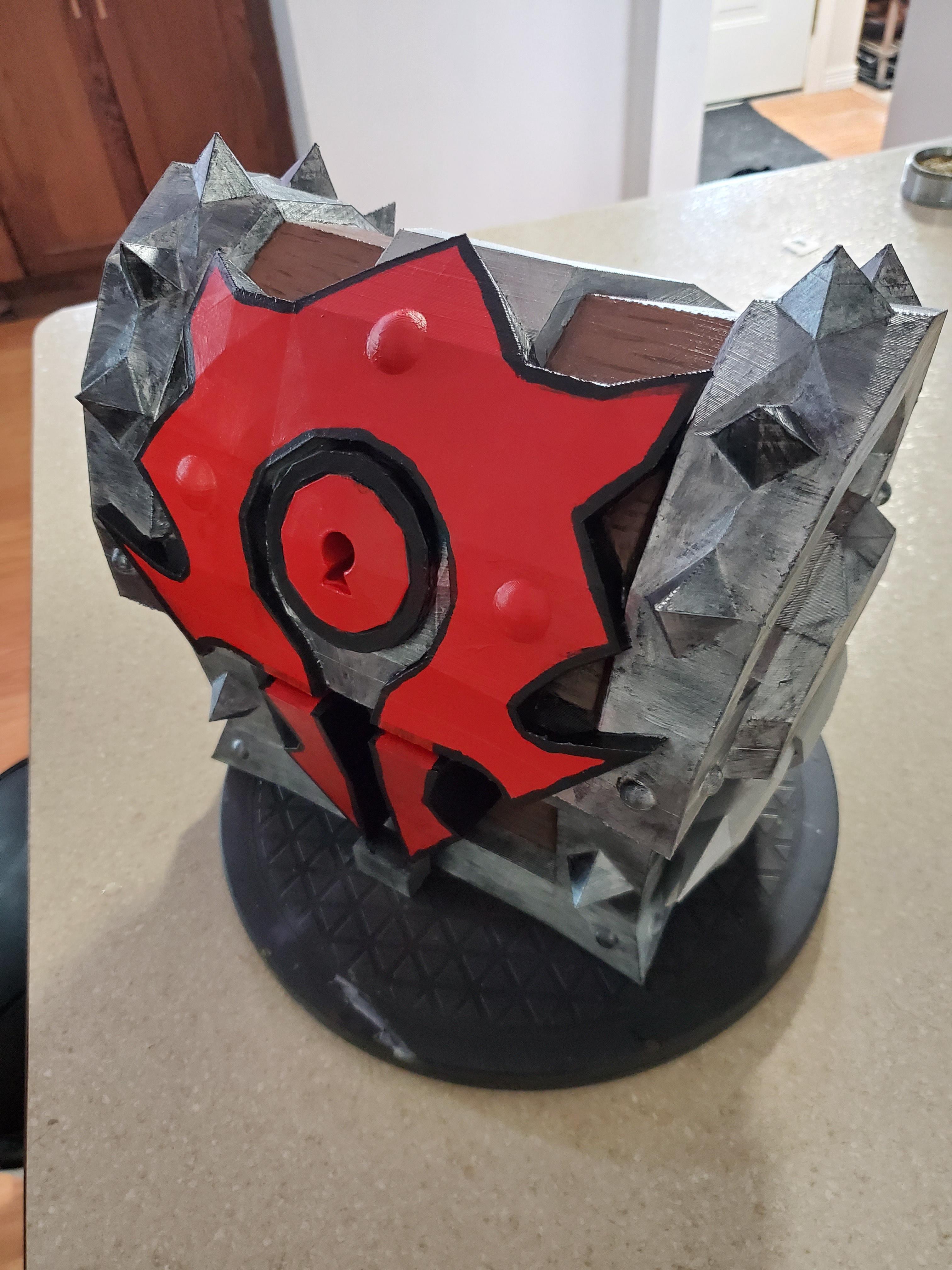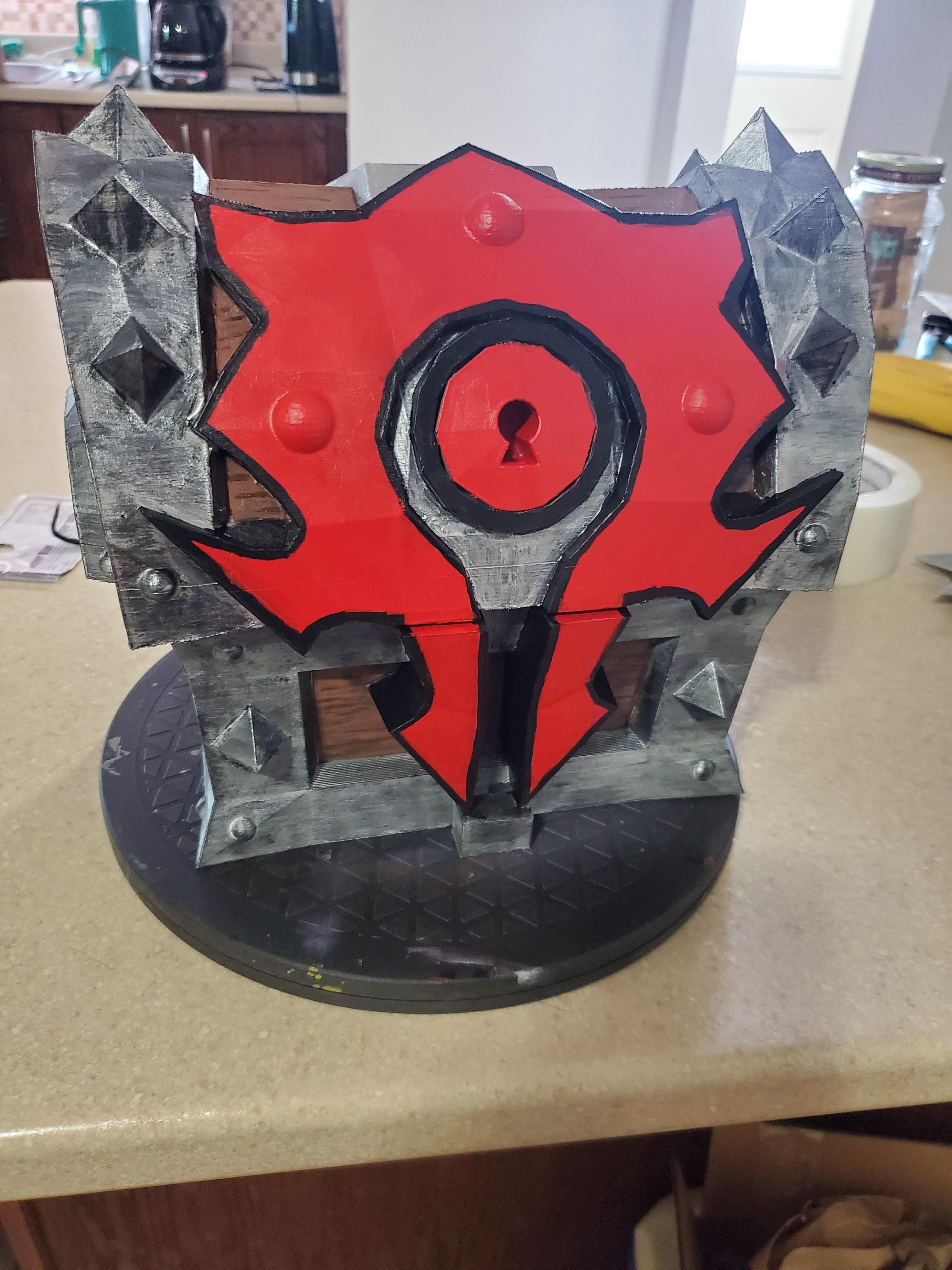 Eisenfaust es un amante de la impresión y recientemente ha creado un maravilloso cofre inspirado en World of Warcraft y la Horda. Además, ha puesto en su interior una Piedra de Hogar, rodeada de un entorno iluminado para darle un gran aspecto.