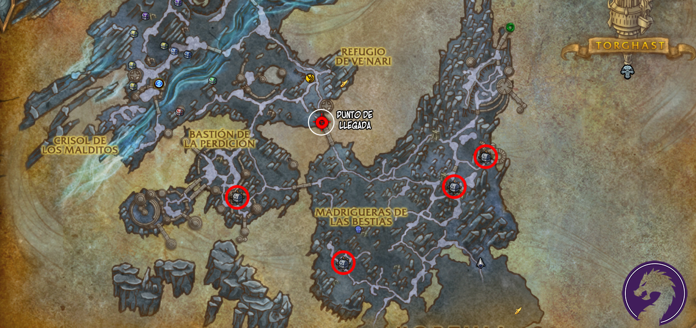 Tras alcanzar cualquiera de los puntos, da clic sobre el Arca de Zovaal para arrastrarlo hasta el punto de llegada marcado en el mapa (Ve'nari te esperará al final del puente). El tiempo total será aproximadamente de 5 minutos ya que el personaje quedará muy ralentizado y deberemos abrirnos paso por todos los enemigos.
