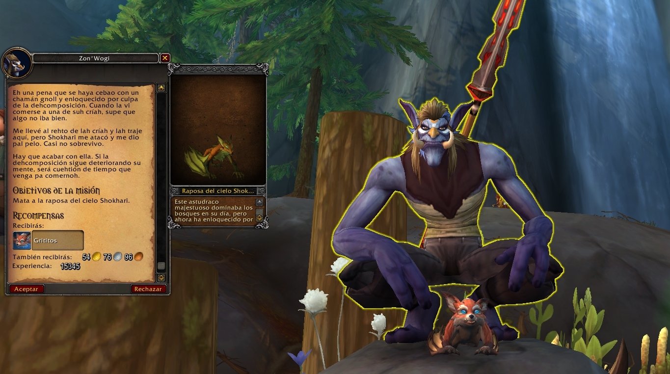Tan solo nos pedirá derrotar a la raposa del cielo Shokhari que se encuentra al suroeste de la zona. Completo este requisito seremos recompensados con la mascota.
