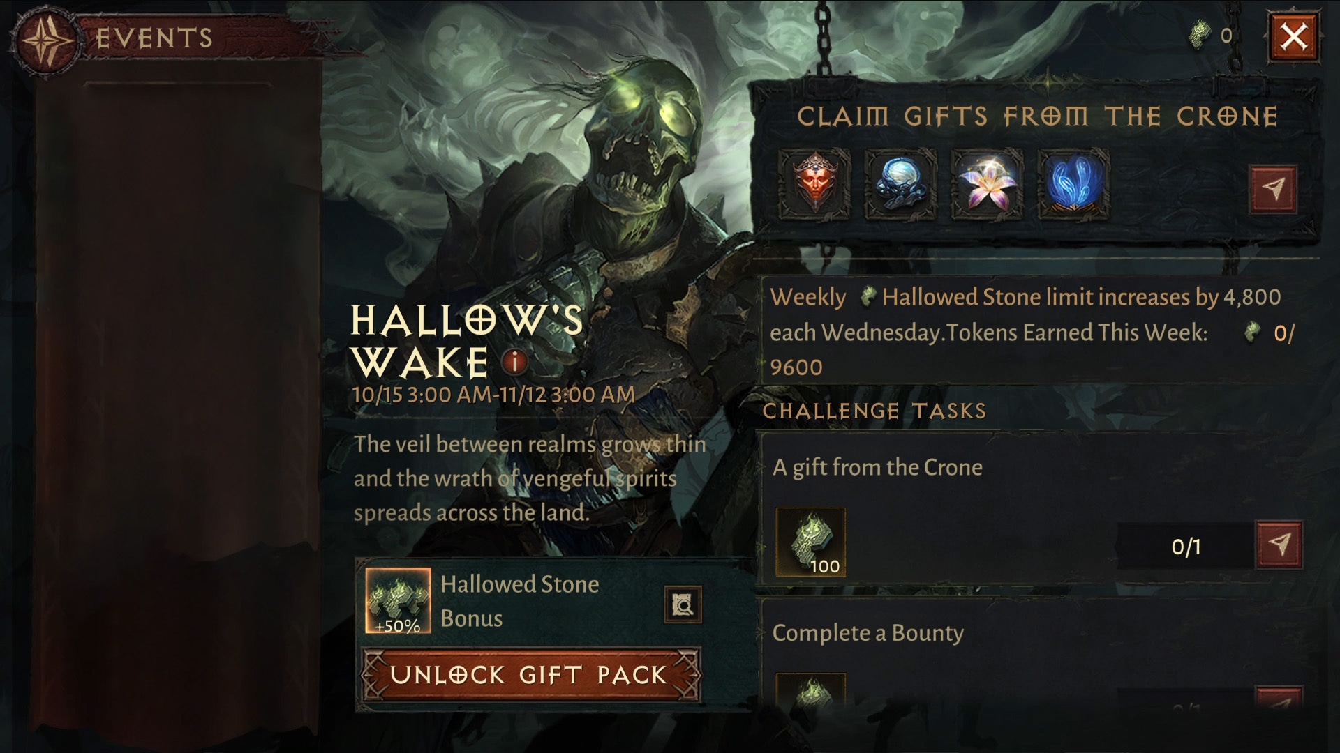 Obtén piedras sacralizadas, destroza todos los goblins que puedas tanto en Perdición del Superviviente como en Caza del Aullador y visita a la Vieja Bruja en Westmarch para recoger tus recompensas diarias. Las mercancías de la Vieja Bruja están repletas de recuerdos de esta festividad. Intercambia las piedras sacralizadas por nuevos cosméticos Sin cabeza, objetos legendarios, blasones legendarios y más.