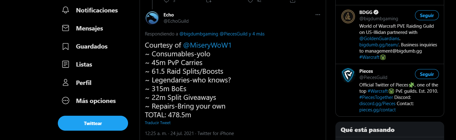 Gracias al tweet publicado por la propia hermandad, sabemos que ahora mismo han gastado uno 478,5 millones monedas de oro a causa de la compra de todos los materiales, BoE utilizados, splits... y que se pueden desglosar de la siguiente forma: