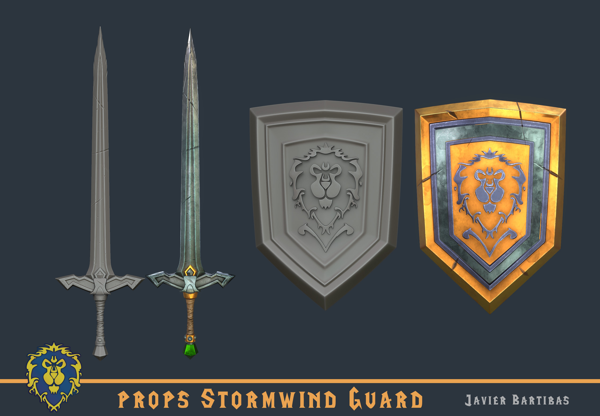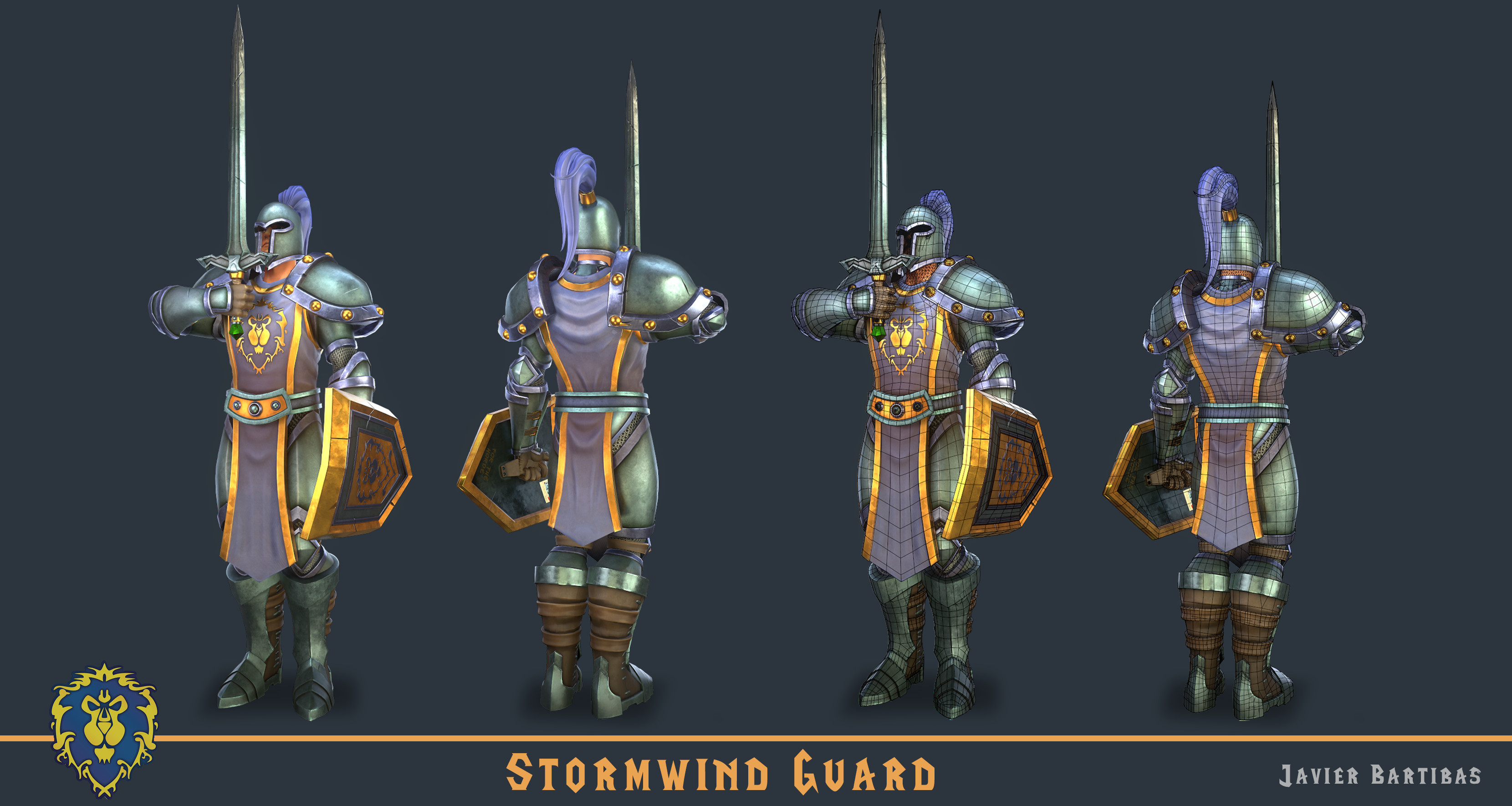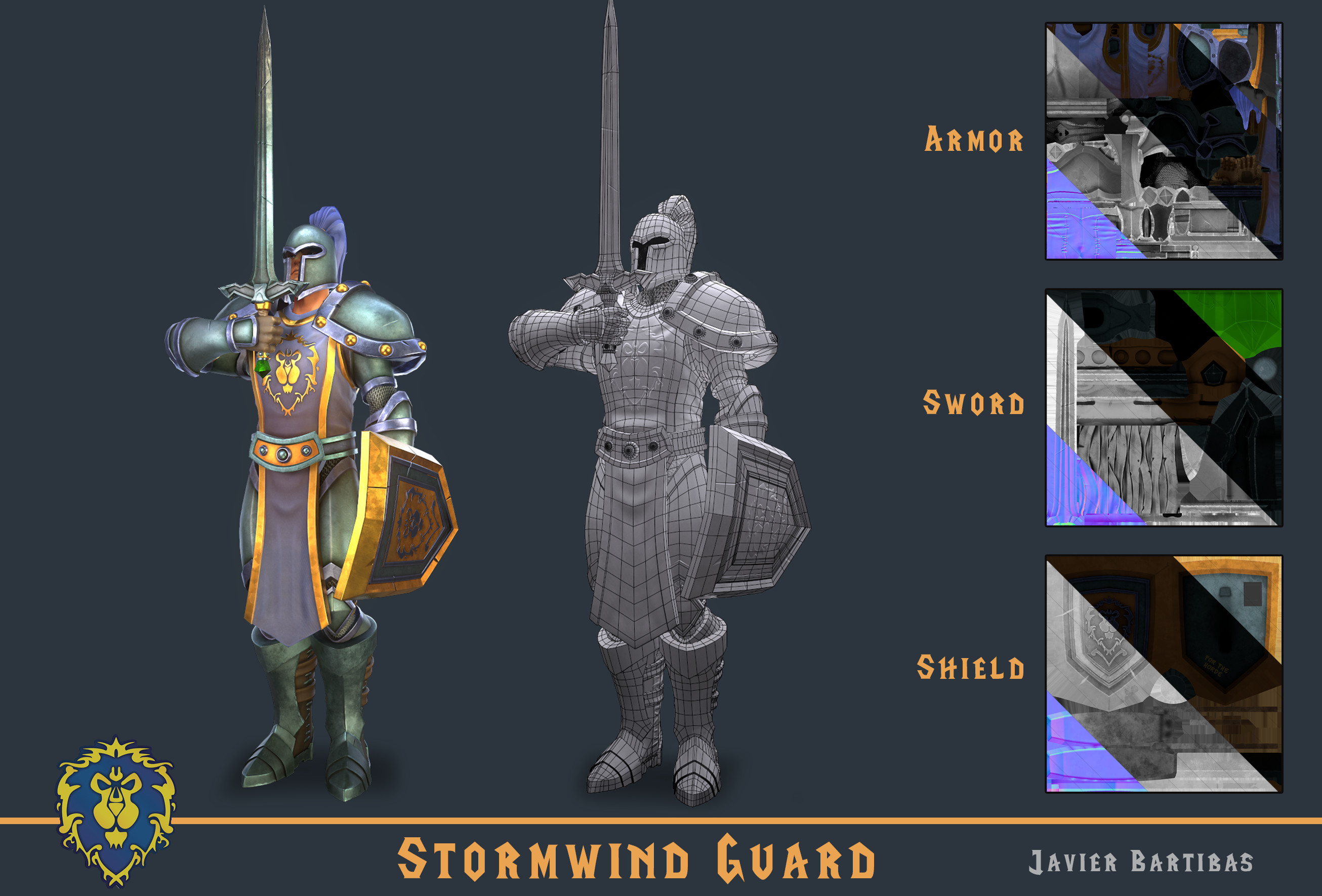 Estoy enamorado de la historia de World of Warcraft y quería crear un conjunto de armaduras que todos reconocieran y que me permitiera practicar mis habilidades para fabricar armaduras, así que decidí elegir la armadura de un guardia de Ventormenta y hacer una versión actualizada con texturas PBR.