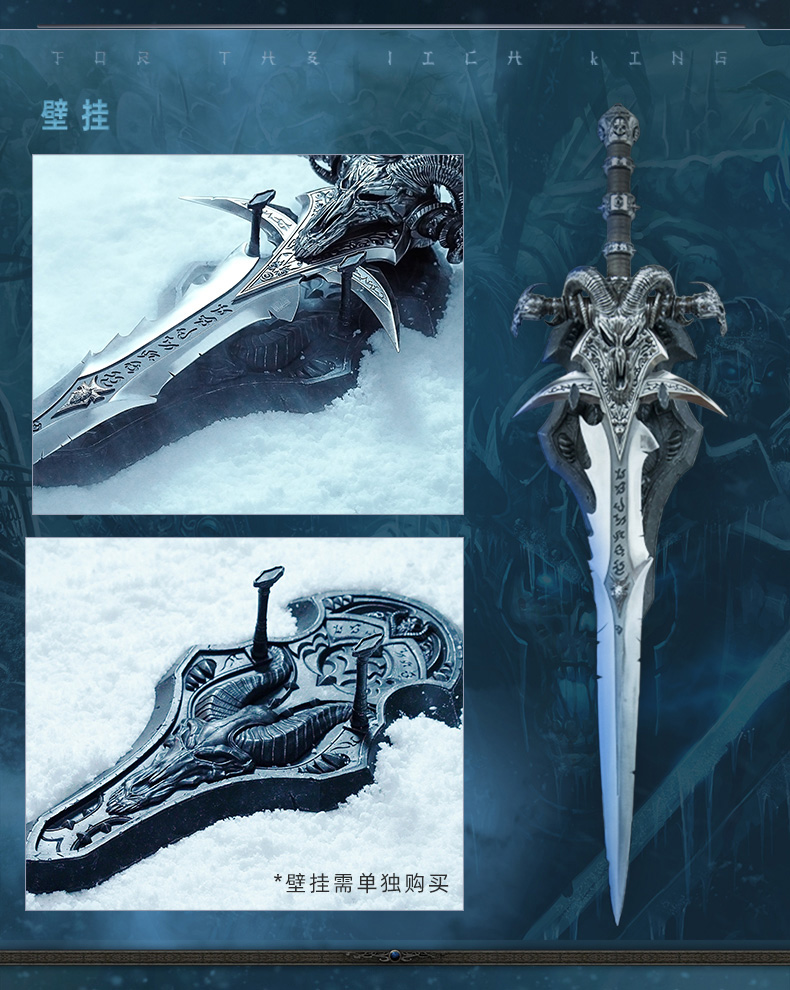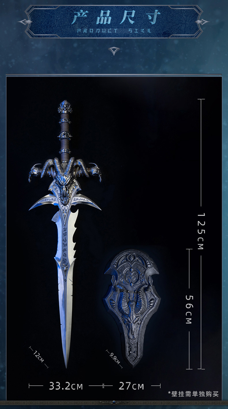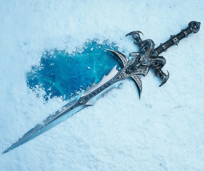 Réplica de Frostmourne (escala 1:1): 125 cm de largo, 33 cm en la parte más ancha y 12 cm en la hoja.