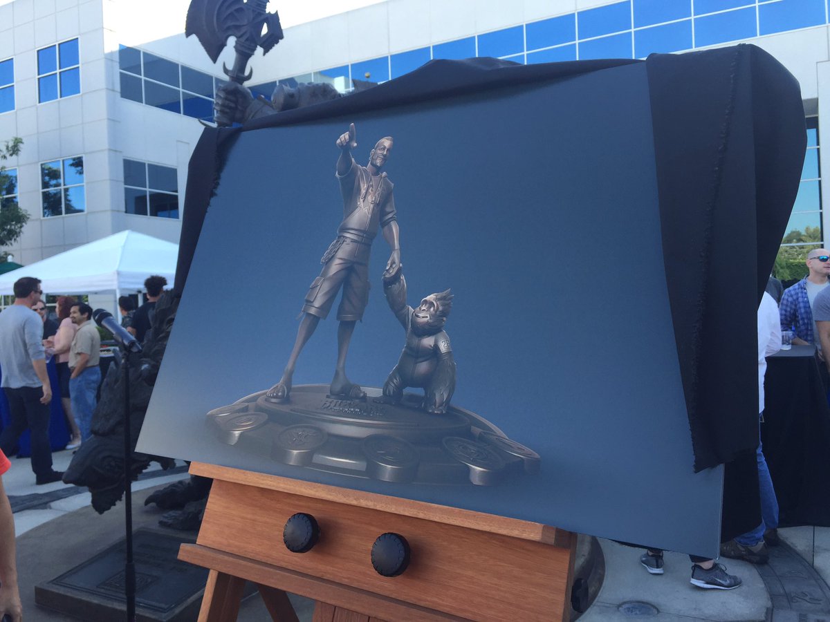 Durante el día de ayer, última jornada en la que acudiría como trabajador a las oficinas de la compañía, Blizzard quiso rendirle un pequeño homenaje. Se mostró la maqueta de una futura estatua que están desarrollando para añadirla en las oficinas y además, realizar una en versión más pequeña como recuerdo para Chris Metzen.
