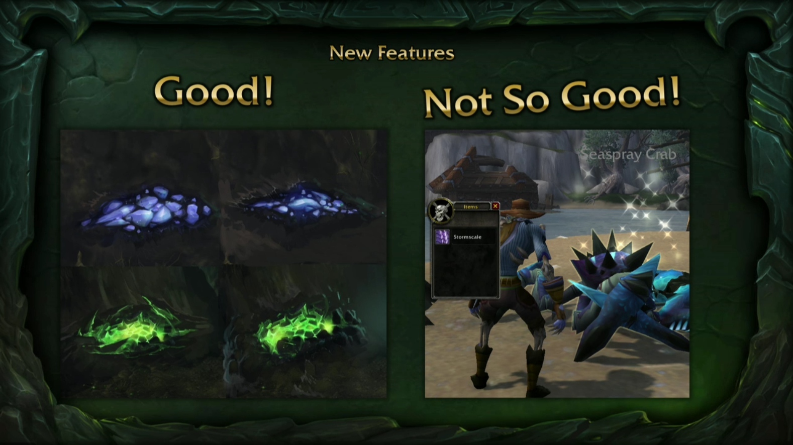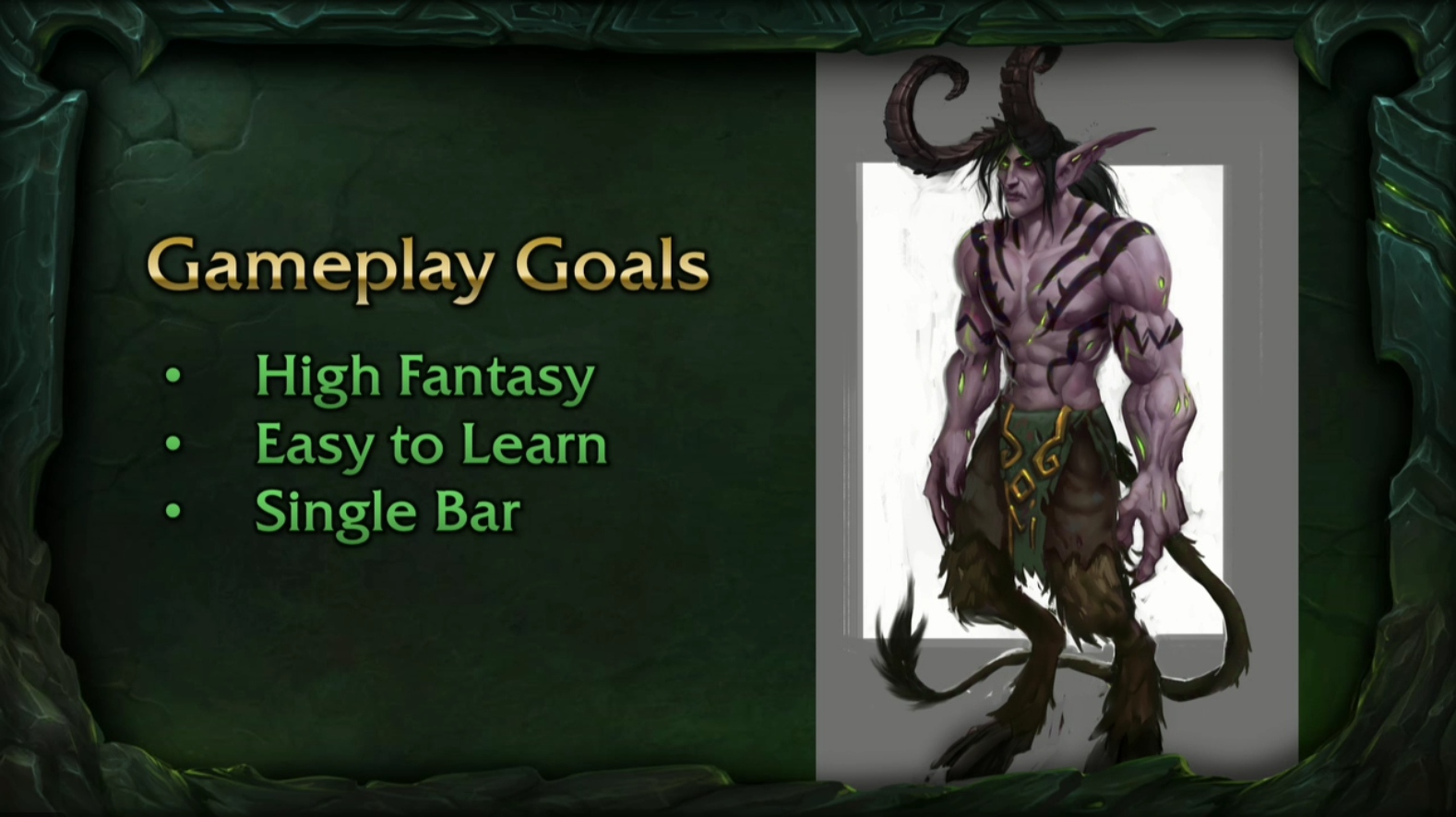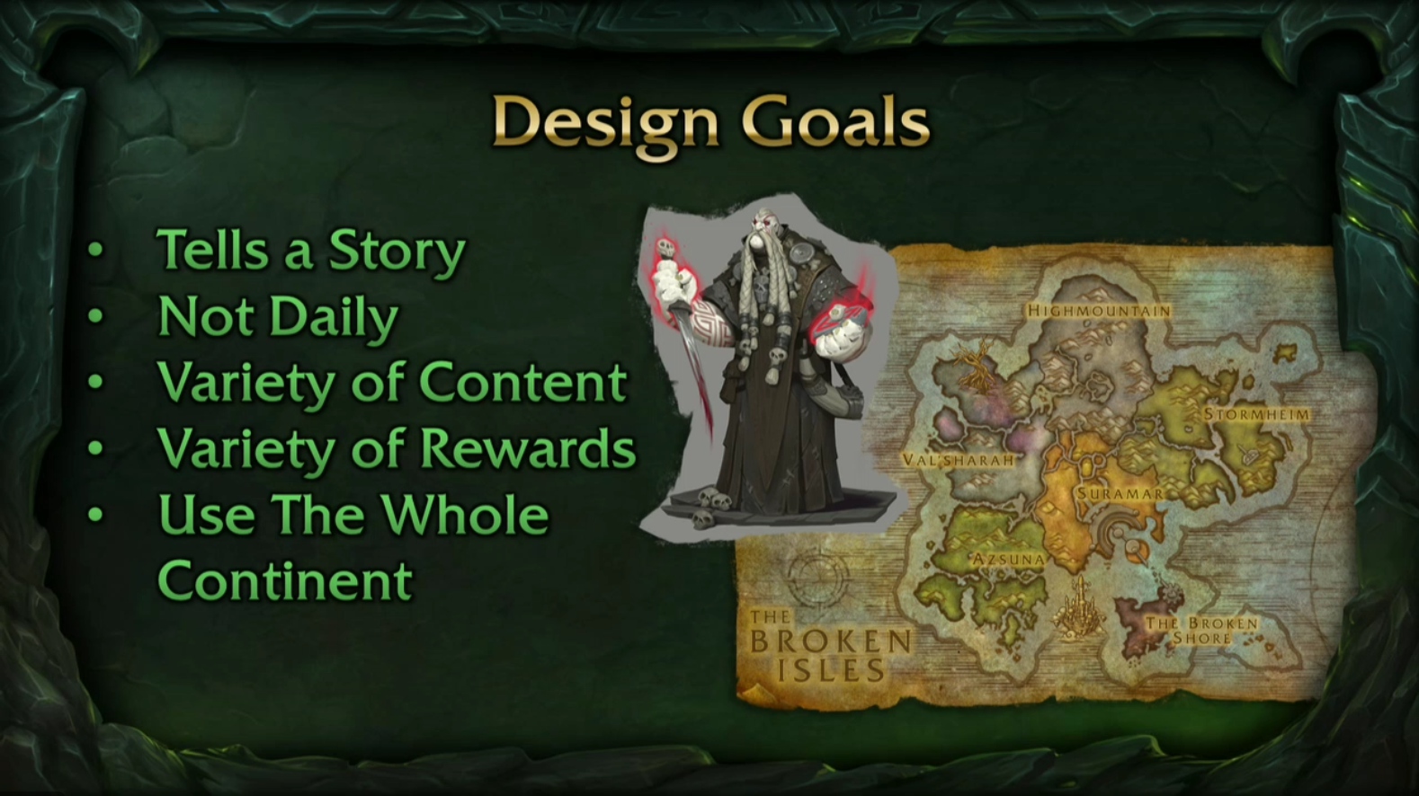 Al principio no había elfos, tantas ruinas o vida submarina. Hubo significativamente menos influencia demoníaca en el concepto original, con la Tumba de Sargeras siendo mucho más pristina.
