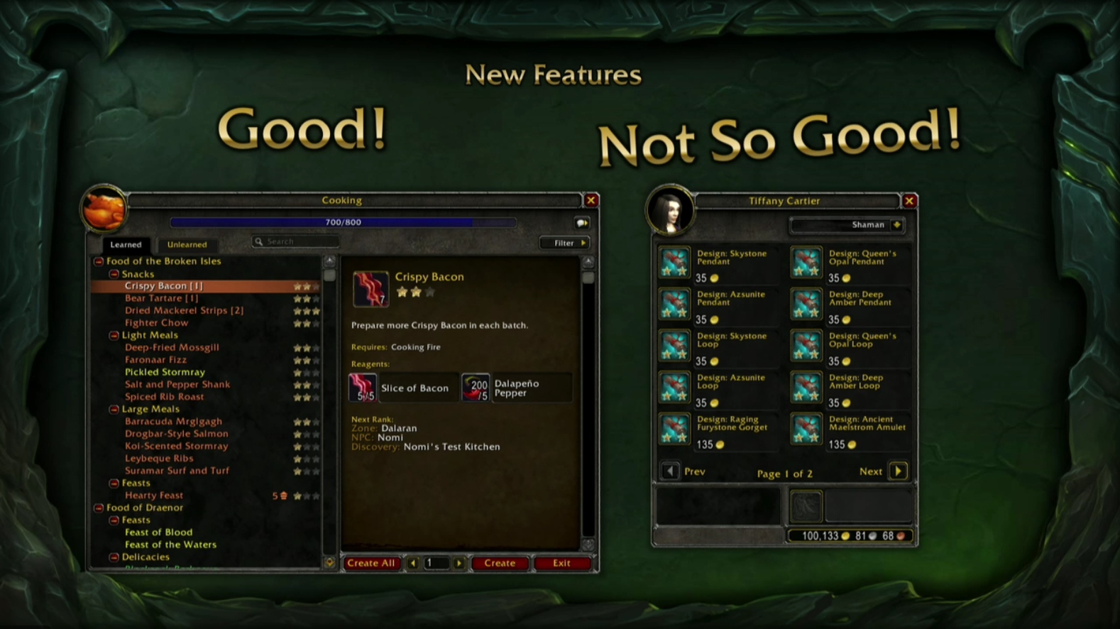 Tuvieron que incorporar muchas de las recetas de rango 2 de las profesiones a los vendedores de Dalaran. Sentían que aunque le querían dar un trasfondo a las profesiones, acabaría siendo demasiado pesado.