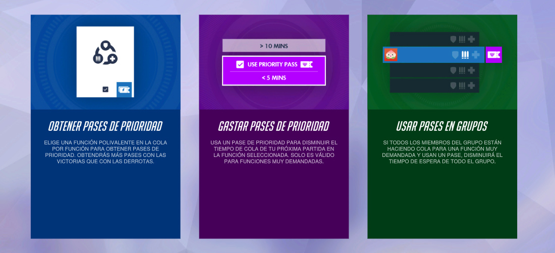 Es la nueva divisa que llega al juego, y se trata de un tipo de ficha que ganaremos si elegimos jugar como "polivalente" (también conocido como "flex"), lo cual nos hará ganar estos pases (si además ganamos la partida recibiremos más cantidad). El motivo de esto es que, cuando queramos acceder a jugar un rol donde la cola de espera sea muy elevada, gastando estos pases acortaremos ese tiempo.