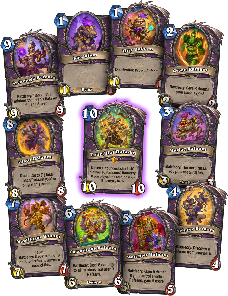 Cromi, para impedir que Murozond, Señor del Infinito, destruya todas las líneas temporales, ha invocado a los héroes más poderosos de todas las eras de Warcraft. Cada clase cuenta con un esbirro con Renombre, unos aliados legendarios tan poderosos que vienen acompañados de cartas adicionales que se añaden automáticamente a tu mazo con las que crear sinergias formidables. ¡Protege las líneas temporales y derrota a Murozond junto con campeones emblemáticos del pasado, futuro y realidades alternativas!