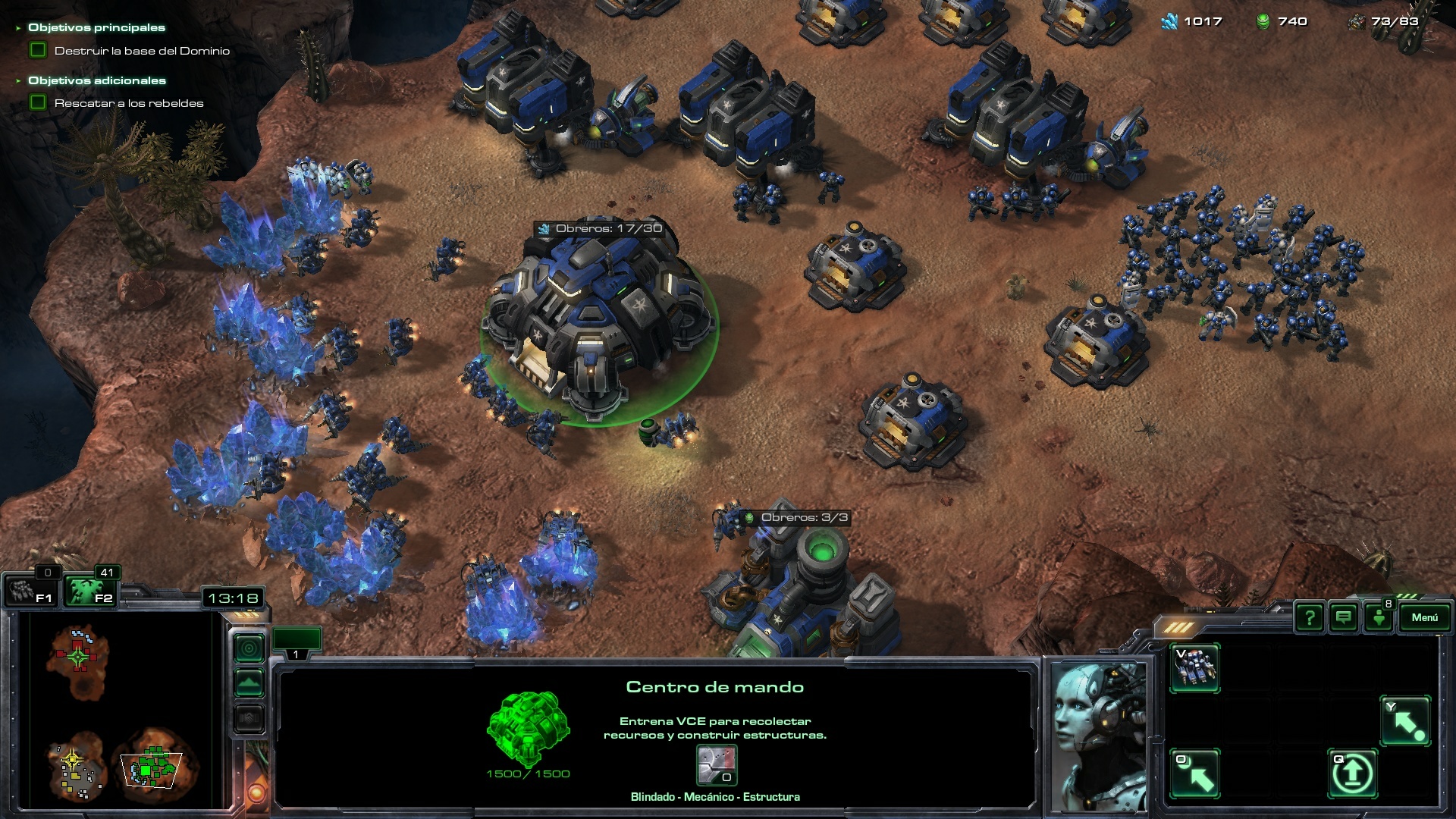 El objetivo principal de la misión es destruir la base del Dominio. Para ello, tendremos que hacer crecer nuestra base creando muchos VCE's para que recolecten lo más rápido posible y podamos tener material suficiente para garantizar el éxito en la misión.