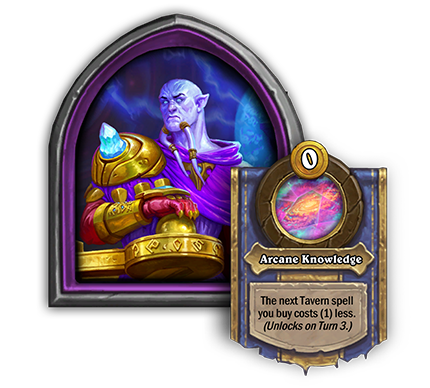 El próximo hechizo de taberna que compres cuesta (1) menos de oro. (Se desbloquea en el turno 3).