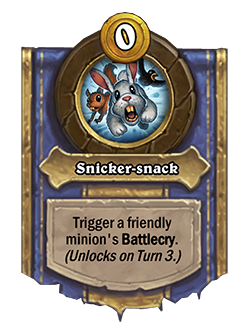 Obtienes una copia del último hechizo de taberna que hayas lanzado. Cada turno, tu siguiente poder de héroe cuesta (1) menos de oro.