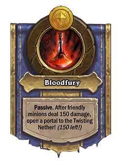 Ahora: Furia sangrienta [Pasivo]: Después de que los esbirros amistosos inflijan 150 p. de daño, abre un portal al Vacío Abisal. (¡150 más!).