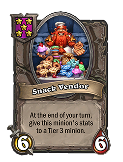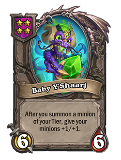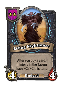 Antes: [Nivel 3], 6/4. Tras comprar una carta, los esbirros de la taberna tienen +2/+1 este turno.