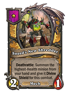 Ahora: Trituradora nueva de Sneed: Último aliento: Invoca los 2 esbirros con más salud de tu mano y les otorga Escudo divino en este combate.