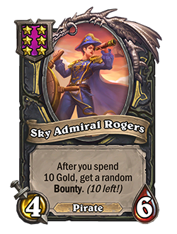 Montón de tesoros: En el turno [5/6/7/8/9], Descubre un esbirro dorado de nivel [3/4/5/6/7]. (¡[4/5/6/7/8] turnos más!).