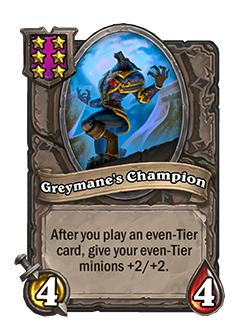 Ahora: 4/4. Después de que juegas una carta de nivel par, otorga +2/+2 a tus esbirros de nivel par.