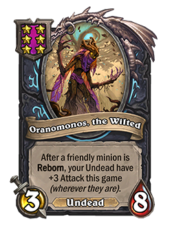 Ahora: Después de que ocurra el Renacer de un esbirro amistoso, tus no-muertos tienen +3 p. de ataque en esta partida (dondequiera que estén).