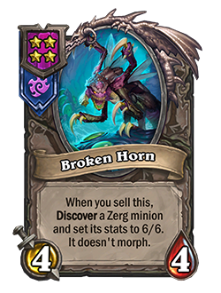 Antes: [Nivel 5]. Grito de batalla: Descubre un esbirro zerg y cambia sus estadísticas a 6/6. No muta.
