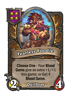 Antes: 4/4. Al final de tu turno, juega una gema de sangre sobre todos tus otros esbirros.