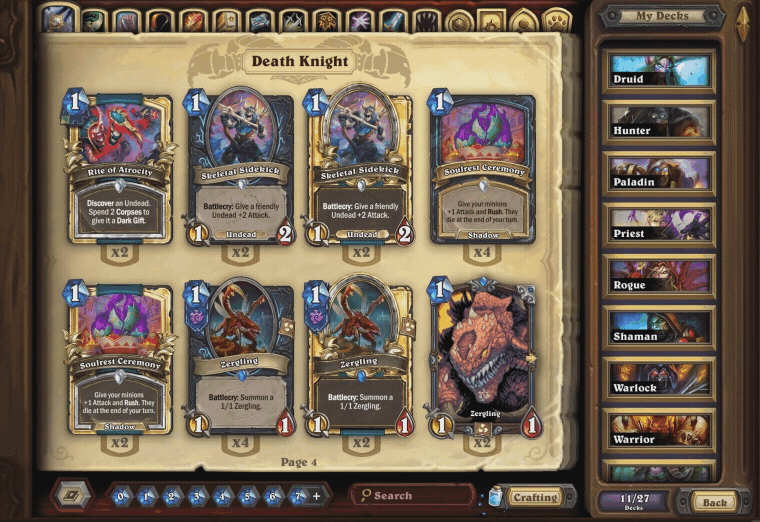¡Participa en la nueva Anfitaberna de doble clase del 3 al 10 de diciembre! Podrás crear un mazo con cartas de las dos clases QUE QUIERAS y de la expansión estándar QUE QUIERAS. Paga tu entrada y compite en partidas hasta ganar 6 veces o perder 3. Los premios se basarán en tu actuación (al igual que ocurre con la pelea de taberna en acceso anticipado).