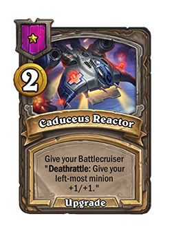 Antes: Otorga «Último aliento: Otorga +1/+1, +2/+2, +3/+3, +6/+6, +8/+8, +12/+12, +22/+22 a tu primer esbirro por la izquierda» a tu Crucero de batalla.
