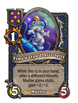 Antes: Mientras esta carta está en tu mano, obtiene +1/+1 después de que un múrloc amistoso diferente obtenga estadísticas.