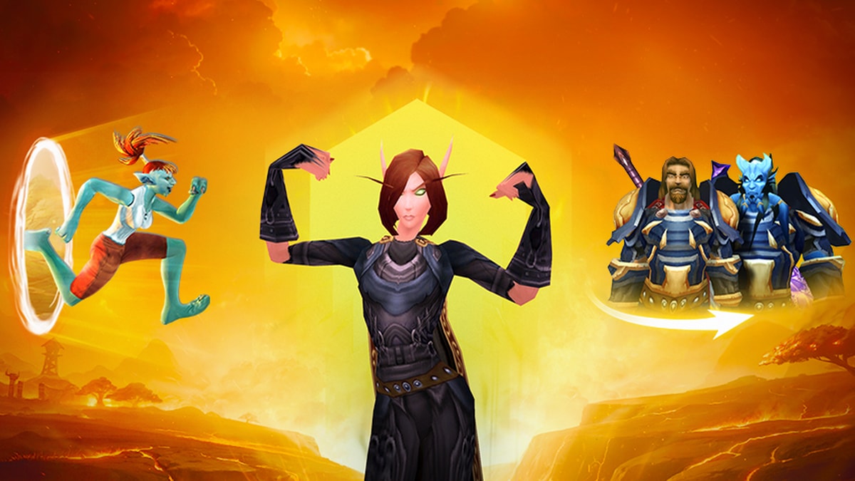 Ahorra hasta un 30 % en servicios de progresión*** como cambios de nombre, cambios de raza, packs de cambios de facción y transferencias de personajes pagados en la Tienda Battle.net. También puedes comprarlos en la tienda del juego.