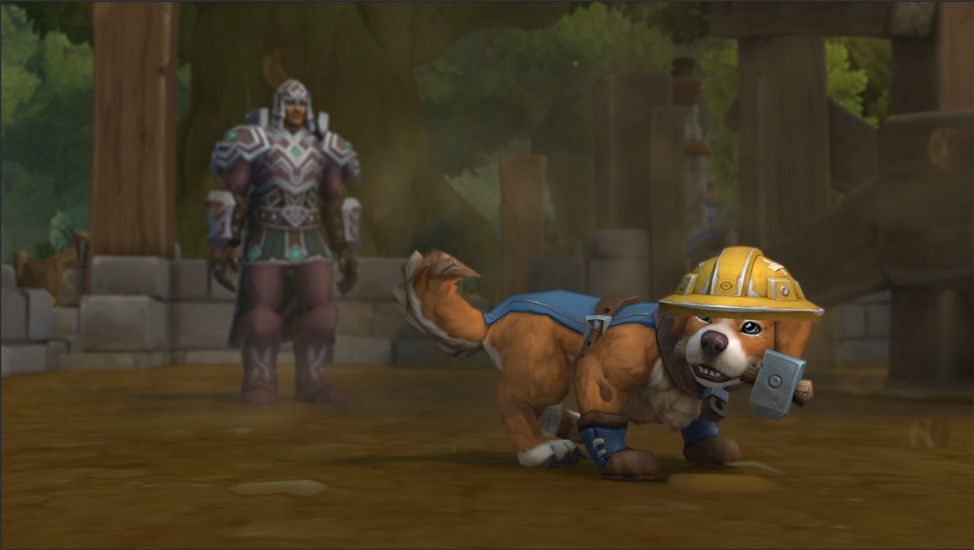Este pack de mascota benéfica incluye al adorable Rufus, que estará disponible tanto en el WoW moderno como en Classic. A Rufus le chifla construir, ¡algo que podrás ver si está mucho tiempo sin hacer nada! Si juegas al WoW moderno, también recibirás una caseta de perro, un cuenco y una cama.