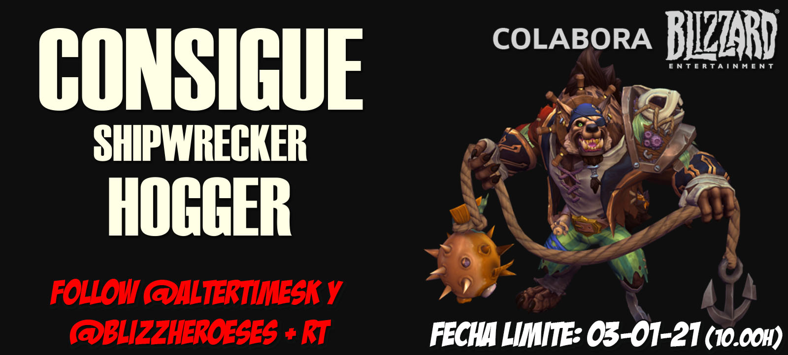 Seguir a la cuenta de twitter @AlterTimeSK y @BlizzHeroesES.