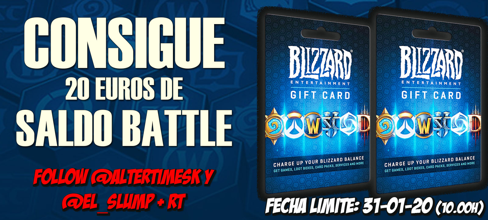 @el_slump y el equipo de AlterTime colaboran para traeros un sorteo muy especial para nosotros. Durante esta semana y hasta el día 31 de enero (10:00h), tendréis la oportunidad conseguir 20 euros/dólares de Saldo Battle.net (válido para todo el mundo).